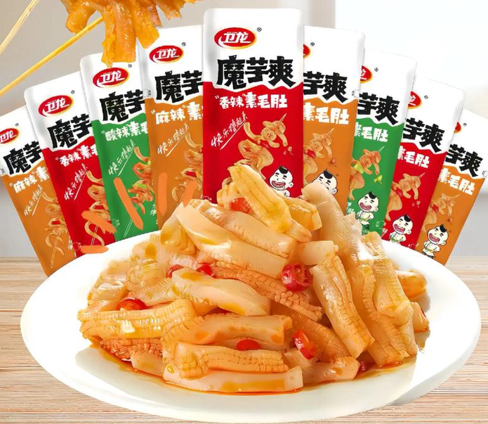 有着“人类猫条”之称的魔芋爽、素毛肚正在成为休闲食品领域的现象级品类,也成为盐津铺子、卫龙美味业绩增长的重要推手。