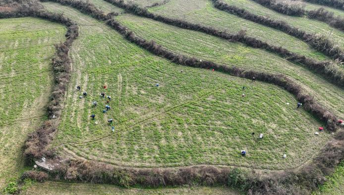 园区村共有559户2079人。园区村村委会主任李萍给记者算了一笔账,园区村人均种植1.5亩豌豆尖,每亩收益6500元,2025年人均可支配收入2.1万余元。李萍说:“小小豌豆尖‘掐’出了一条乡村振兴的新路子,这笔‘豌豆尖经济账’的背后,也是村民们日子越过越红火的生动写照。”